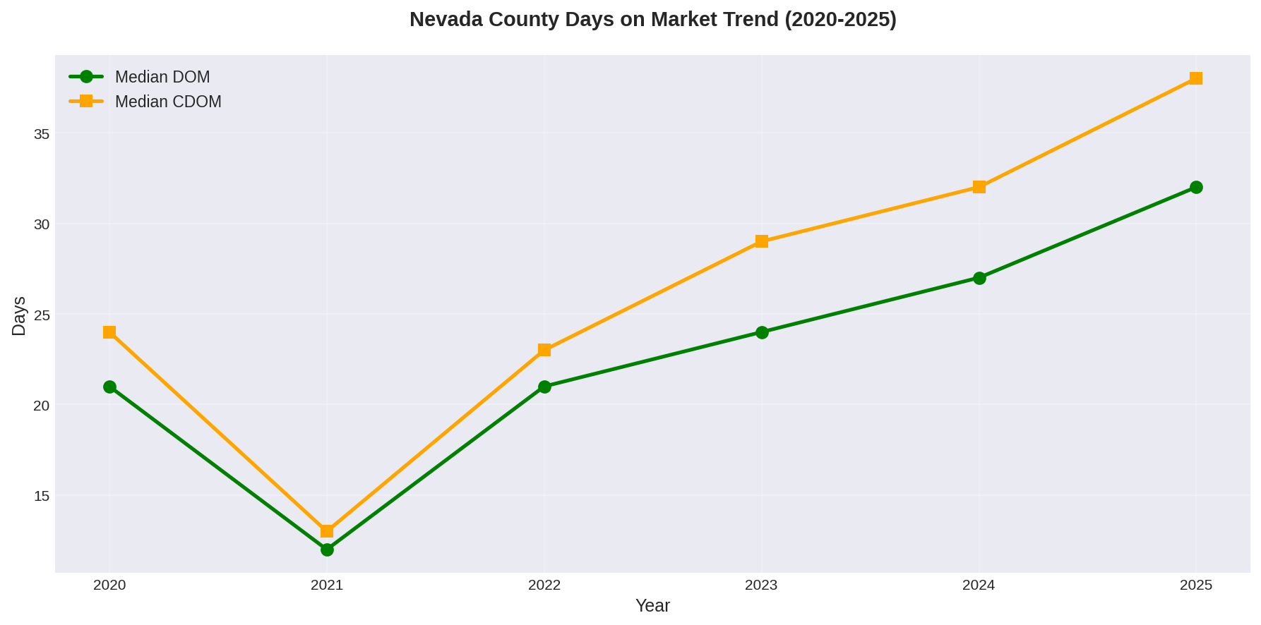 Homes took longer to sell in 2025, with median Days on Market increasing to 32 days, up from 27 in 2024 and continuing a multi-year trend away from pandemic-era speed. For context: